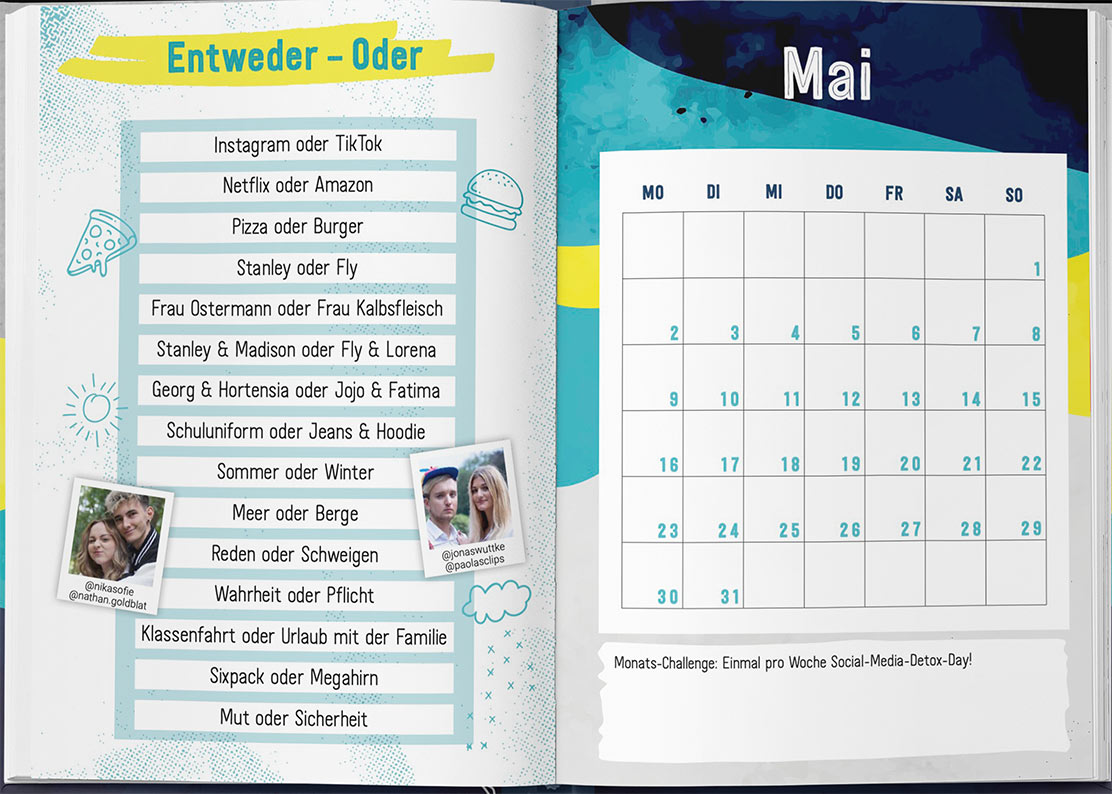 Neben einem Überblick über das komplette Schuljahr 2021/2022 und praktischen Stundenplänen sowie Hausaufgaben-Übersichten gibt es im Schülerkalender einmaliges Hintergrund-Know-how, kultige Sprüche, lustige Quiz- und Spielideen, kreative Steckbriefe und spannende Challenges. Mit diesem Schulplaner der kreativen Köpfe Jonas Ems und Jonas Wuttke, der in Zusammenarbeit mit Community Editions entstanden ist, wird es im neuen Schuljahr garantiert nicht langweilig! Ab sofort bei Amazon, Thalia, Hugendubel & Co. erhältlich.